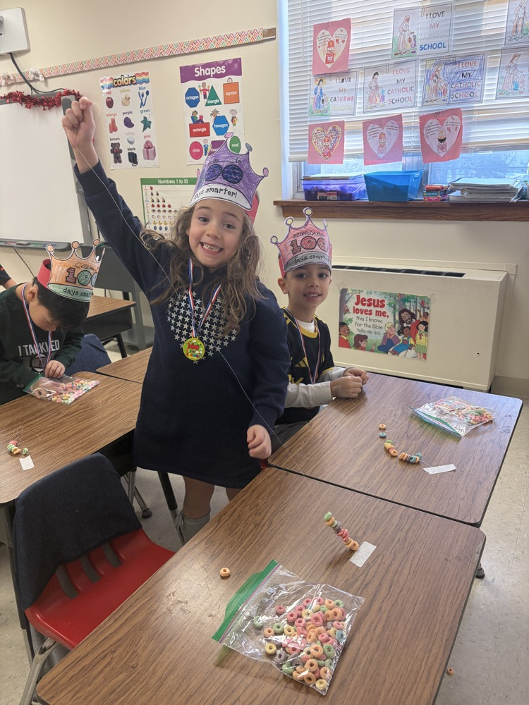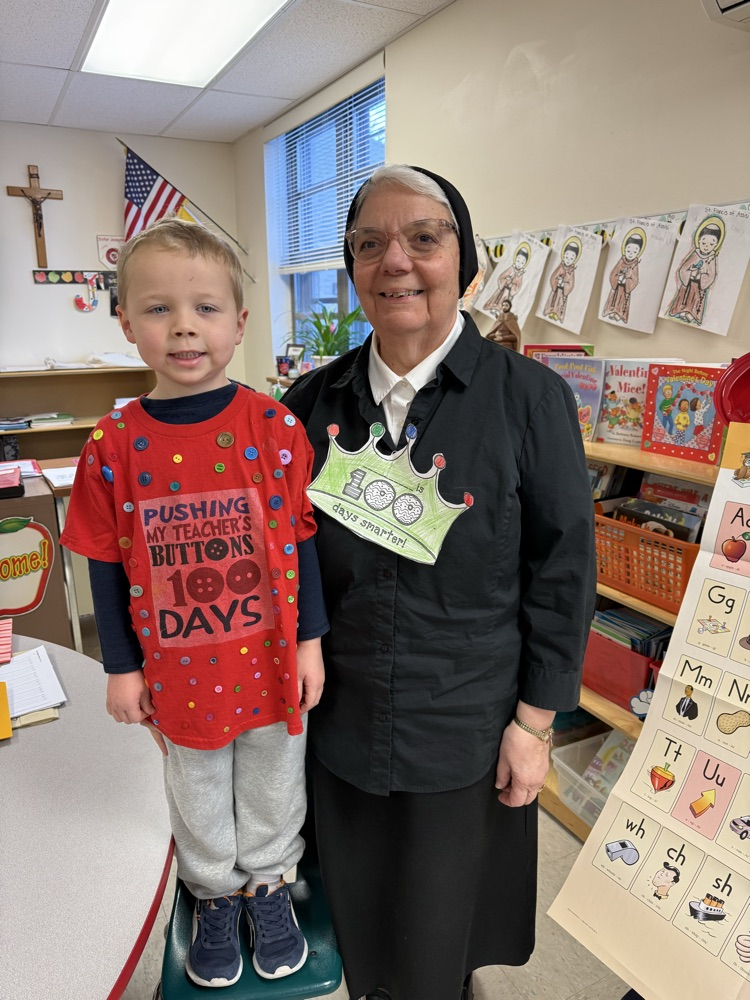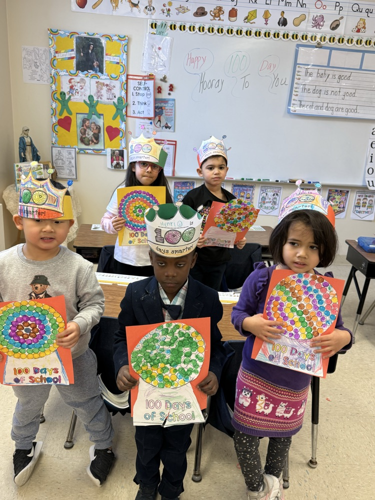 ✨KB had a great 💯day of school today! They wore special shirts commemorating the important day. They danced, read, counted to 100 and worked on their 100 dot paint gumball machines. They enjoyed their special treats and spending it with Sister Jo!🥰 #SFCS