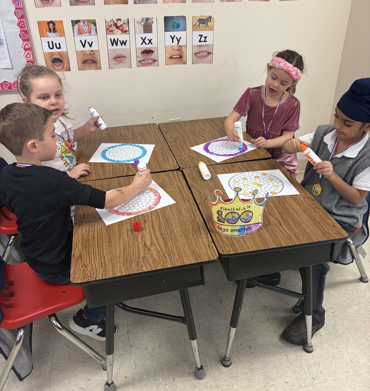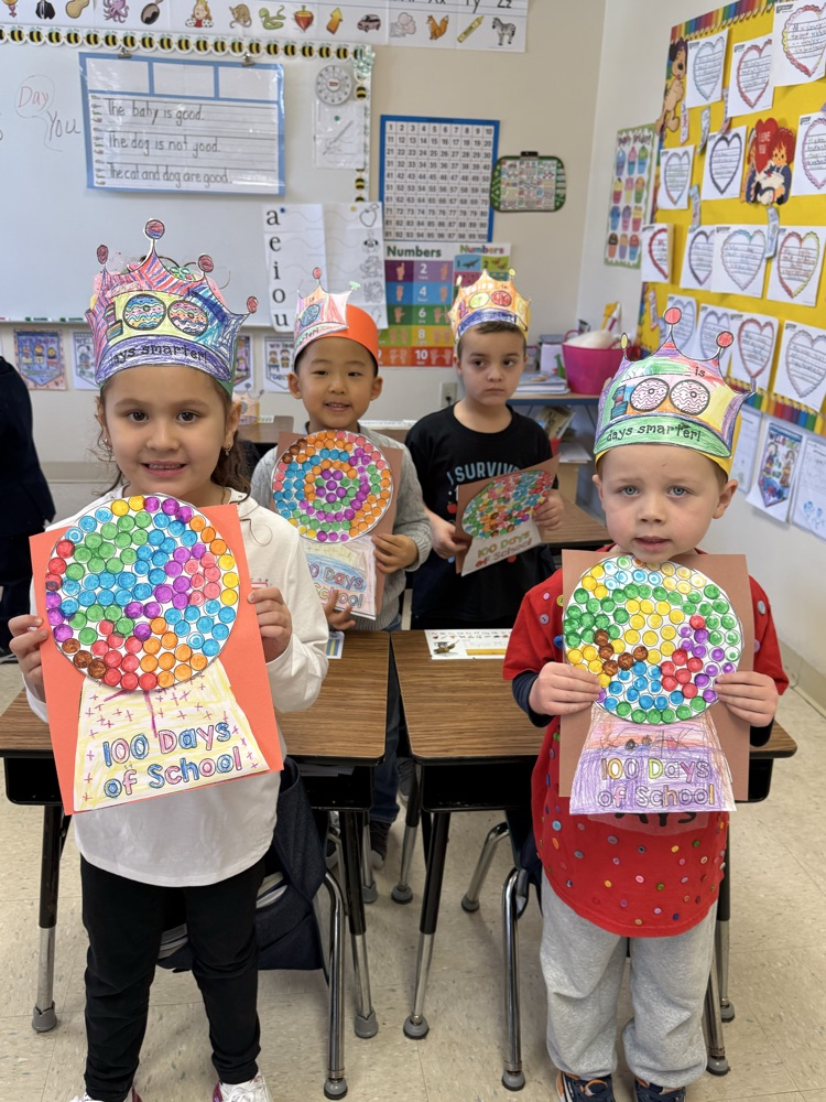 ✨Today KA had so much fun today celebrating the 100th day of school! They made a fruit loop necklace with a 💯 fruit loops, did a dot art project of 100 circles⭕️to make a gumball machine, listened to stories about the 100th day of school and counted to 100 by 1’s, 2’s, 5’s and 10’s. The students danced to 100 songs and enjoyed the piñata and treats. It was a fun day in K!😃#SFCS