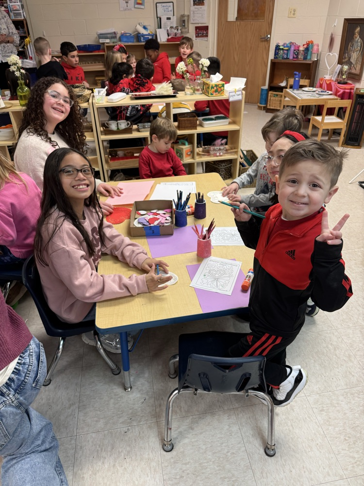 ❣️Our 5th graders visited their PreK buddies today. They had a great time making Valentine’s Day 💌cards together!😊 #SFCS