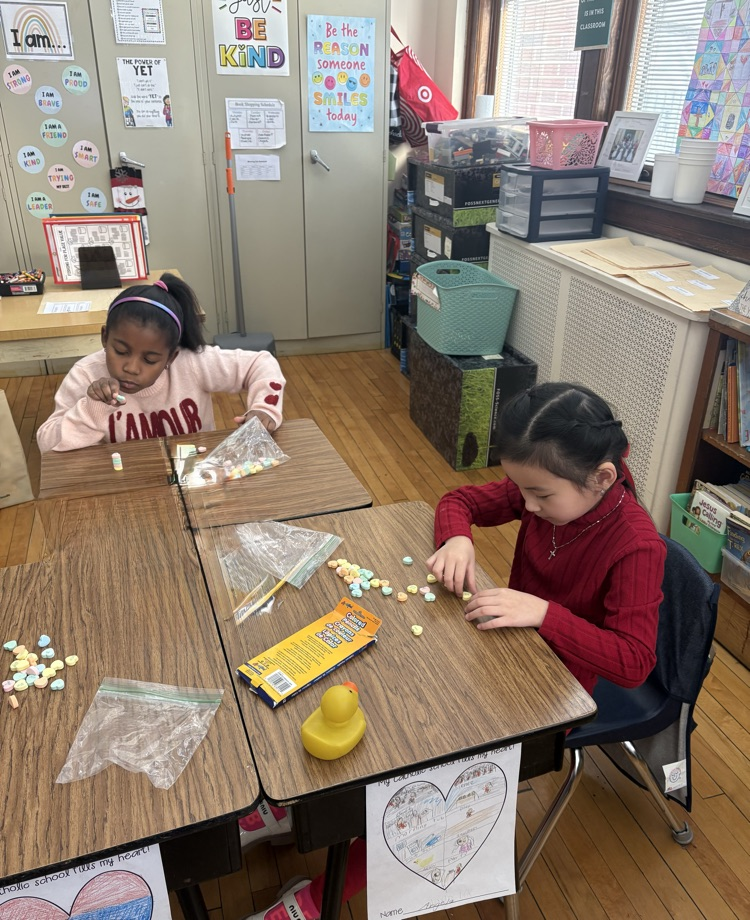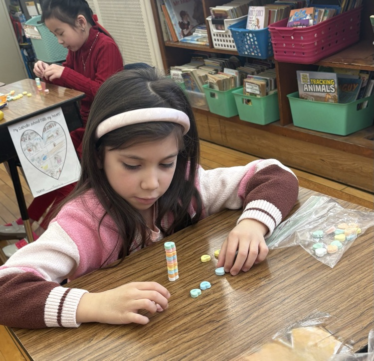 💕It was Valentine’s Day math in Mrs. Masset’s 2nd grade class today. They sorted conversation hearts by color and then used the information to make a bar 📊graph. They wrote math graph questions and tried to see who could make the tallest tower out candy of hearts. It was way harder than it looks!🤣 #SFCS