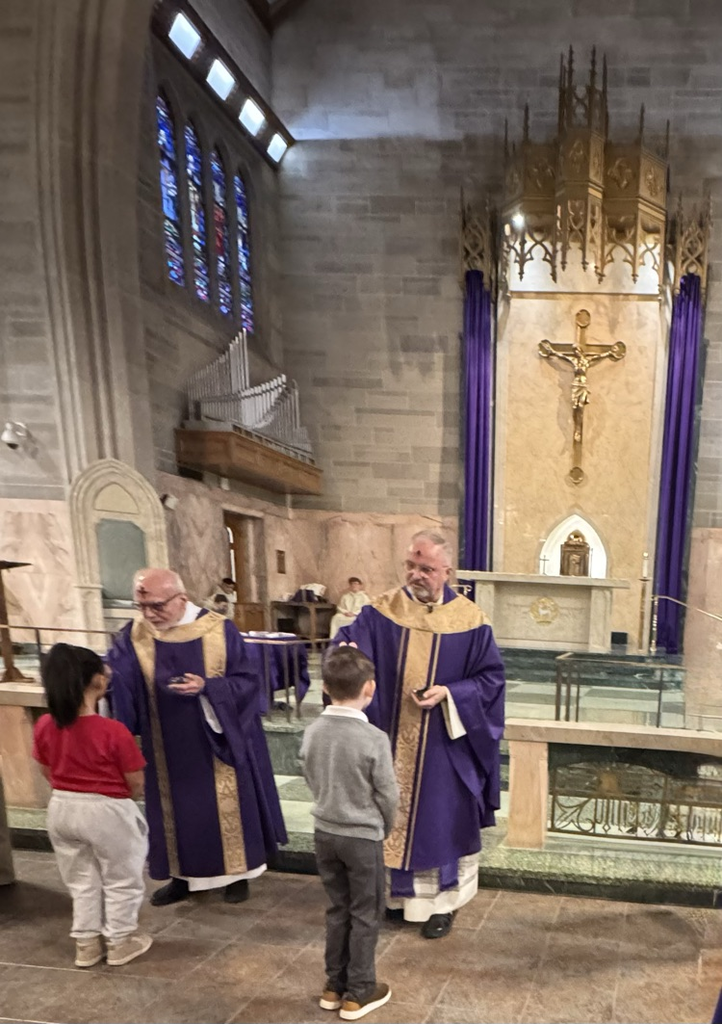 ✨Our Kindergartners have been busy preparing for Lent. Yesterday, Sister Jo’s class celebrated “Fat Tuesday” with a Mardi Gras. Today, both classes received their Ash Wednesday ashes from Deacon Rick.☦️ #SFCS