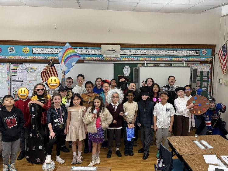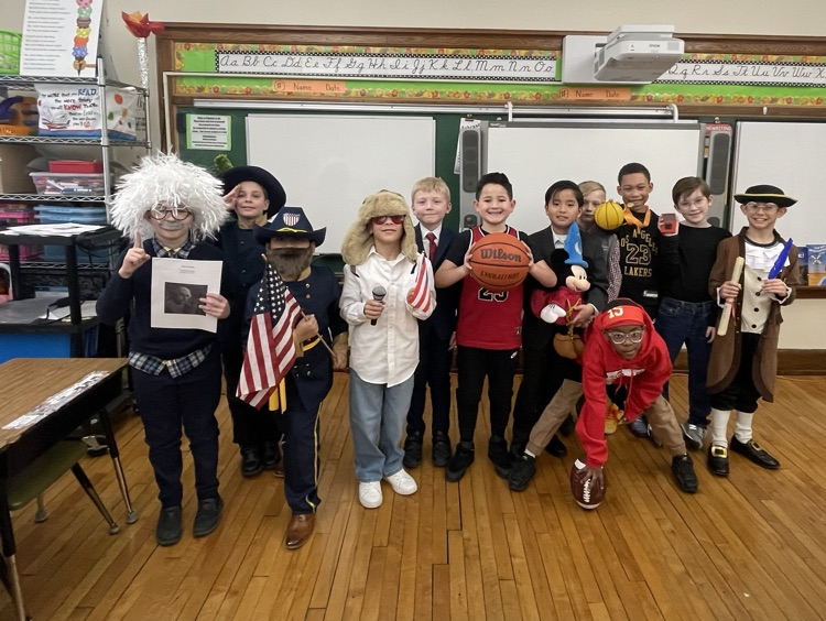 📚Our third grade classes have been completing monthly book projects. After they read a book of a different genre, they would present their completed project to the class. For the month of February, the students read biographies and dressed up as the person they read about. They became their character as they shared important facts about their lives. Today 3A and 3B were visited by many famous people from history to present day including: Albert💡Einstein, Leonardo🎨da Vinci, Derek⚾️Jeter, Helen👓Keller, Frida👩🏽🎨 Kahlo, George🇺🇸Washington and Taylor🎤Swift. Our students are truly learning and living a love of reading!📖 #SFCS