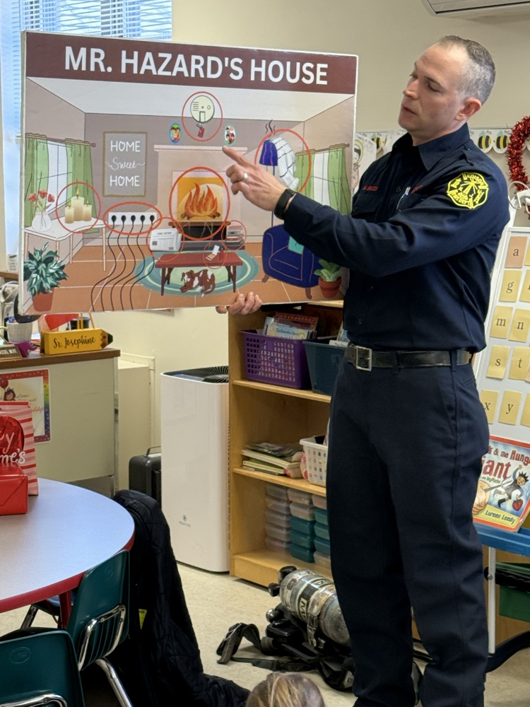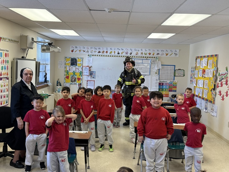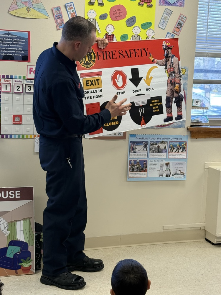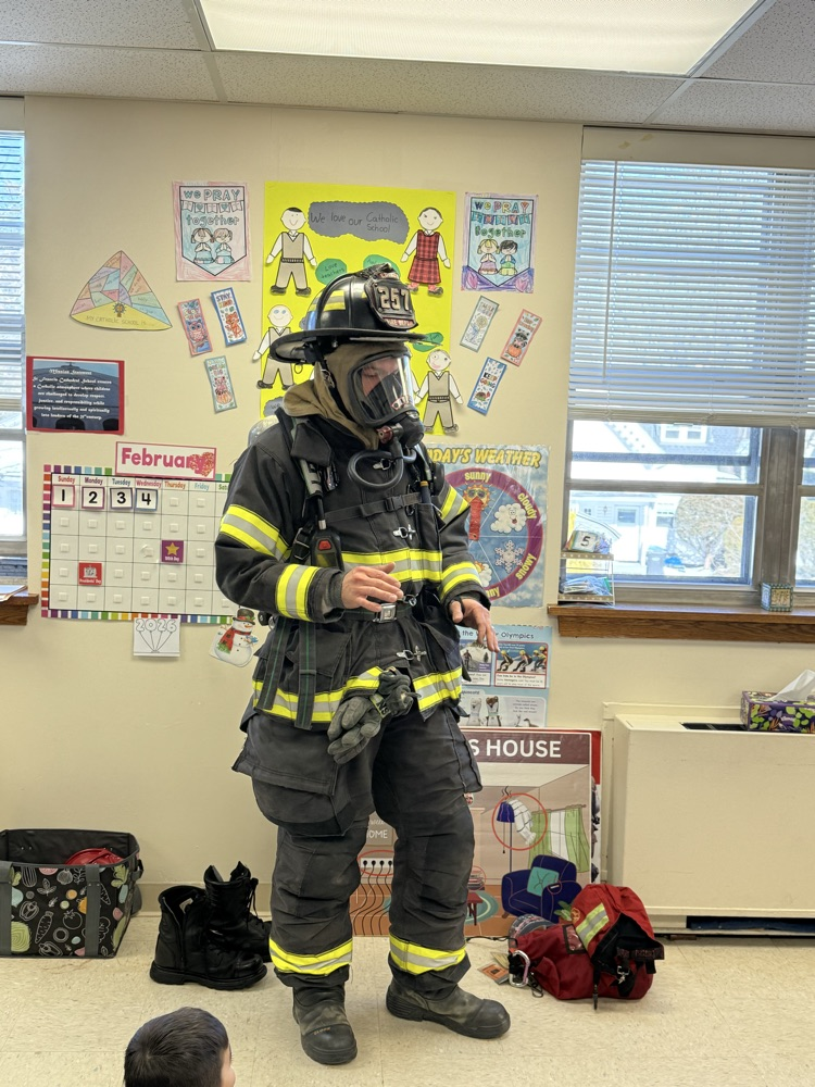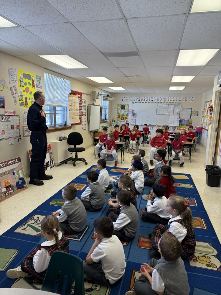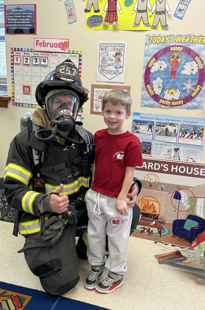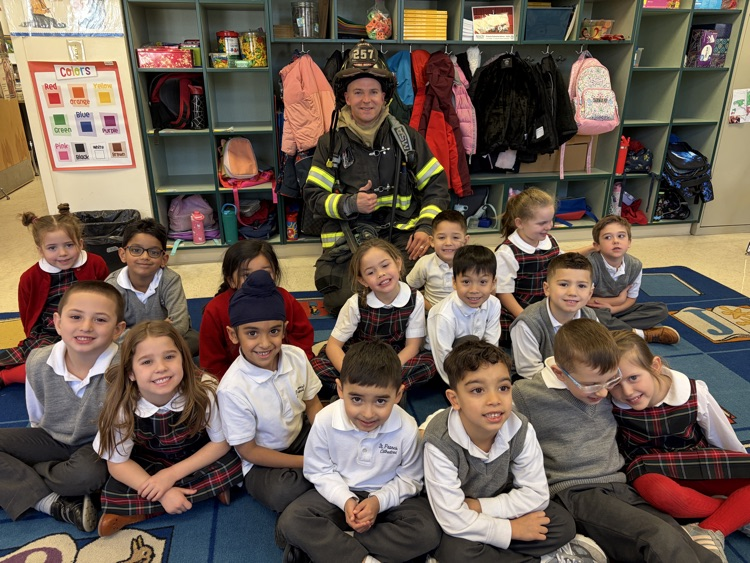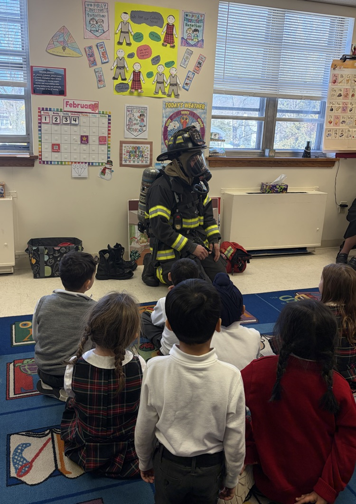 👨🏼🚒Edison Firefighter Sacco came in to talk to the kindergartners about fire safety. He showed the children the gear that he uses and how it protects him. The students learned to “Stop, Drop, Roll”, have a safe meeting place at their home if there is a fire, and the importance of smoke detectors. Special thanks to all our first responders!🚒🧯#SFCS