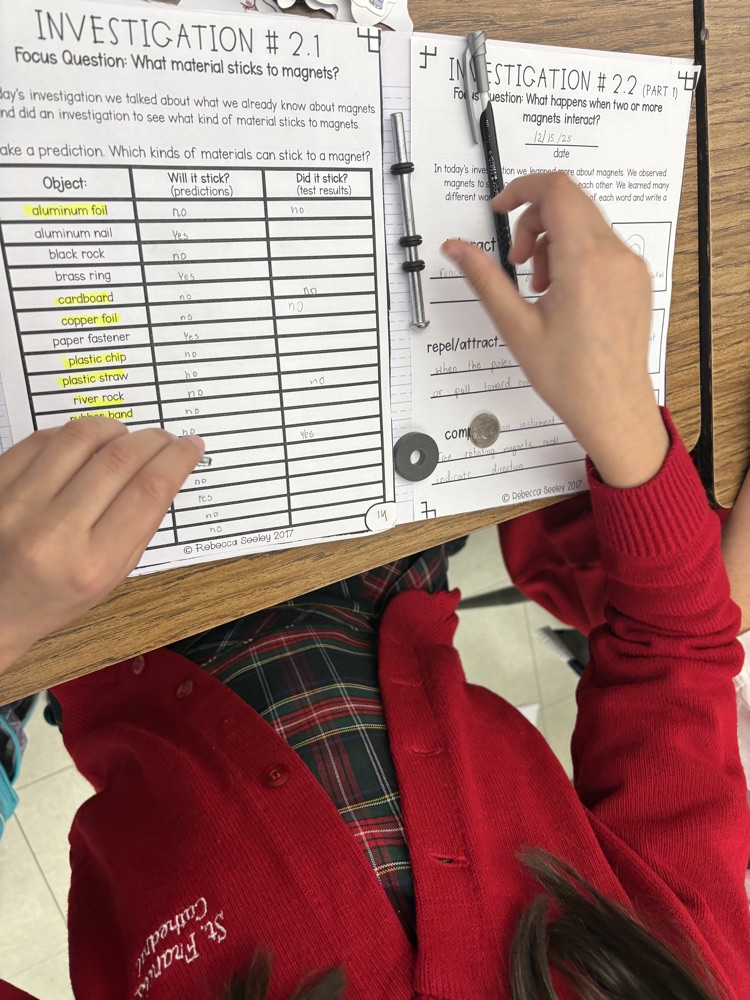🧲In Mrs. Weigele’s 4th grade science classes, students are investigating magnetism. The hands-on exploration tested twelve different types of items to see which of them were magnetic. The students worked hard to test their hypotheses and record their findings.📝 #SFCS
