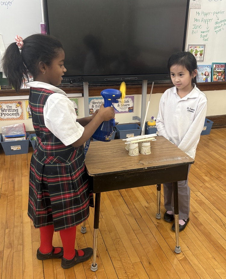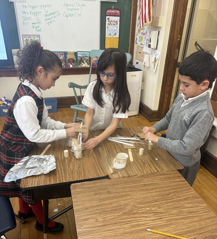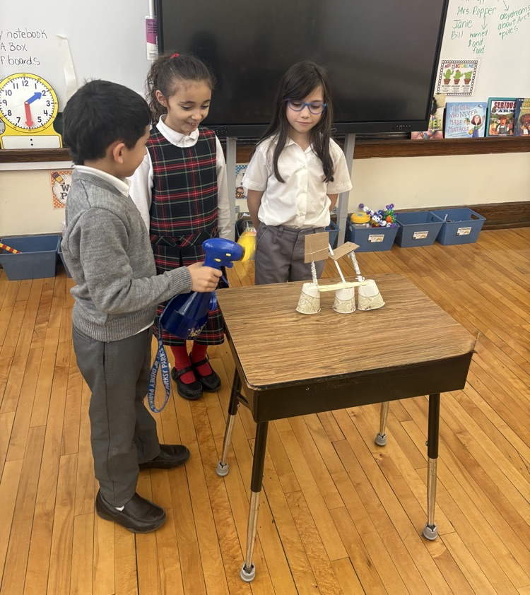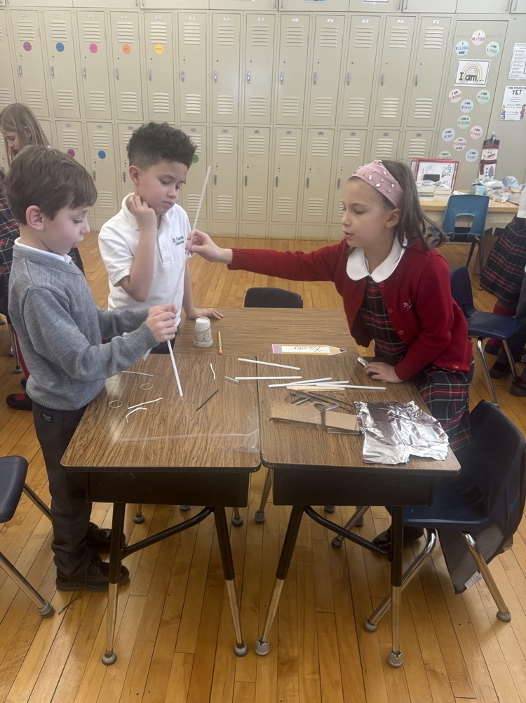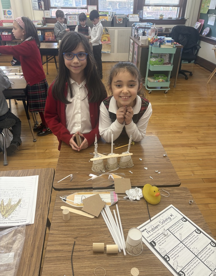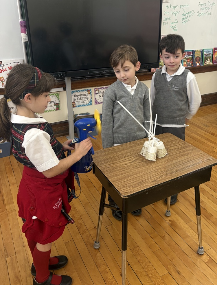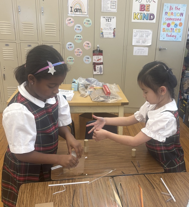 🏗️In science class, Mrs. Masset’s 2nd graders learned about the properties of a successful tower. As engineers, the students were tasked with building a tower at least 45cm tall and stable enough to not blow over in the wind. The children came up with creative solutions for this scientific prompt.😃 #SFCS